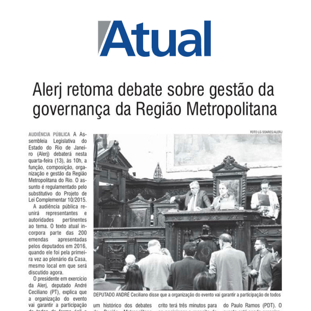Jornal Atual – Alerj retoma debate sobre gestão da governança da Região Metropolitana