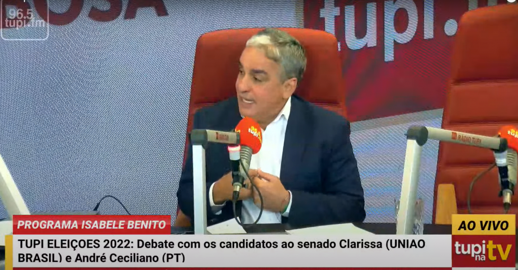 O candidato ao Senado André Ceciliano, da Federação Brasil da Esperança (PT/PCdoB/PV), participou de um debate promovido pela rádio Tupi com a candidata do União Brasil, Clarissa Garotinho, nesta terça-feira (20/09). O atual senador do Rio que busca a reeleição, Romário (PL), e os candidatos Alessandro Molon (PSB) e Cabo Daciolo (PDT) recusaram participar do […]