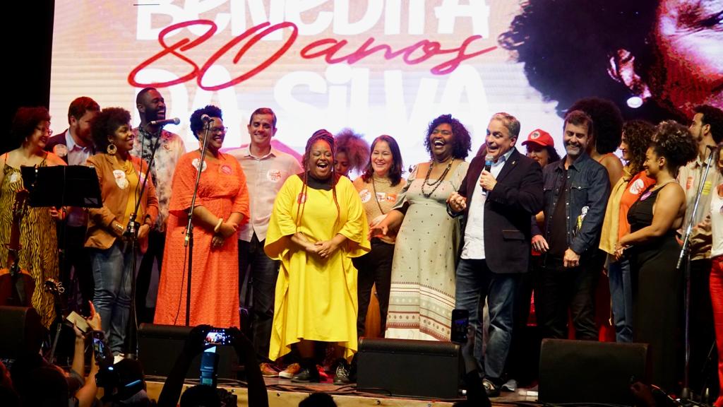 Aniversariante da noite, Benedita da Silva começou seu discurso cantando “Minha Missão”, de João Nogueira e Paulo César Pinheiro, e destacou a importância do apoio da militância petista à pré-candidatura de Ceciliano ao Senado.